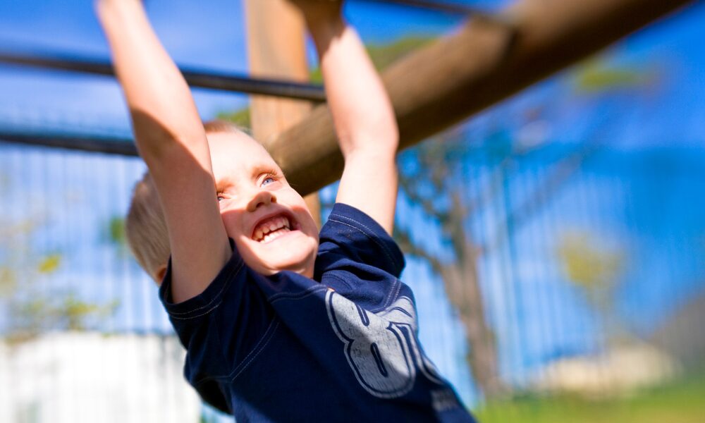 うんていでのぶら下がりは固有覚を刺激する代表的な遊びです。