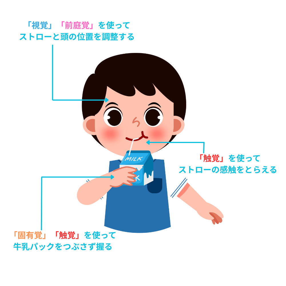 小さな子にパックジュースを渡すと、初めはパックジュースを握り過ぎてこぼしてませんでした? あれって固有覚や触覚の発達が不十分だから起こる現象なんですね!