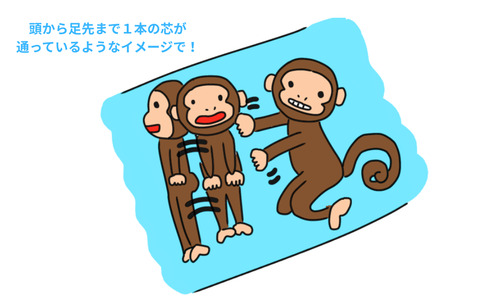 このように、前庭覚によって「身体が傾いている」ことがわかって、そこから固有覚と連動して筋肉の張り具合を高めたりして姿勢を安定させています。
