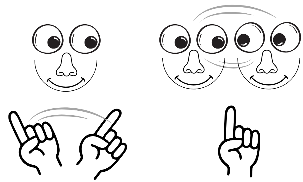 • 同様のスピードで顔を左右に振る➜指はあまりブレずに見えます。